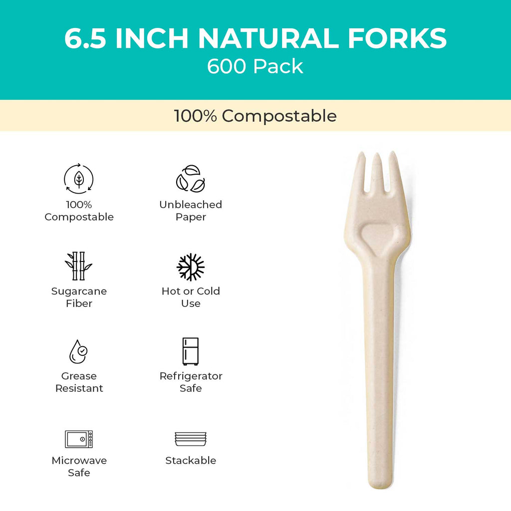 - Heavy Duty and Versatile: Don't overlook the strength of these eco-friendly champions. Our forks outperform standard disposable paper or plastic ones by being four times stronger. Resistant to oil, sogginess, bending, and knife cuts, they're versatile for all dining needs. Microwave-safe, they're suited for both hot and cold foods. Whether in natural brown or classic white, our plates, trays, and bowls gracefully handle the messiest of foods and soups. They maintain their integrity without breaking, wobbling, bending, or soaking through, making every meal a sustainable experience.