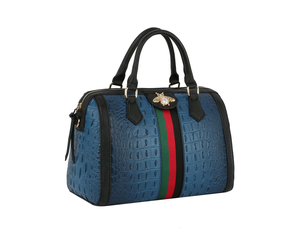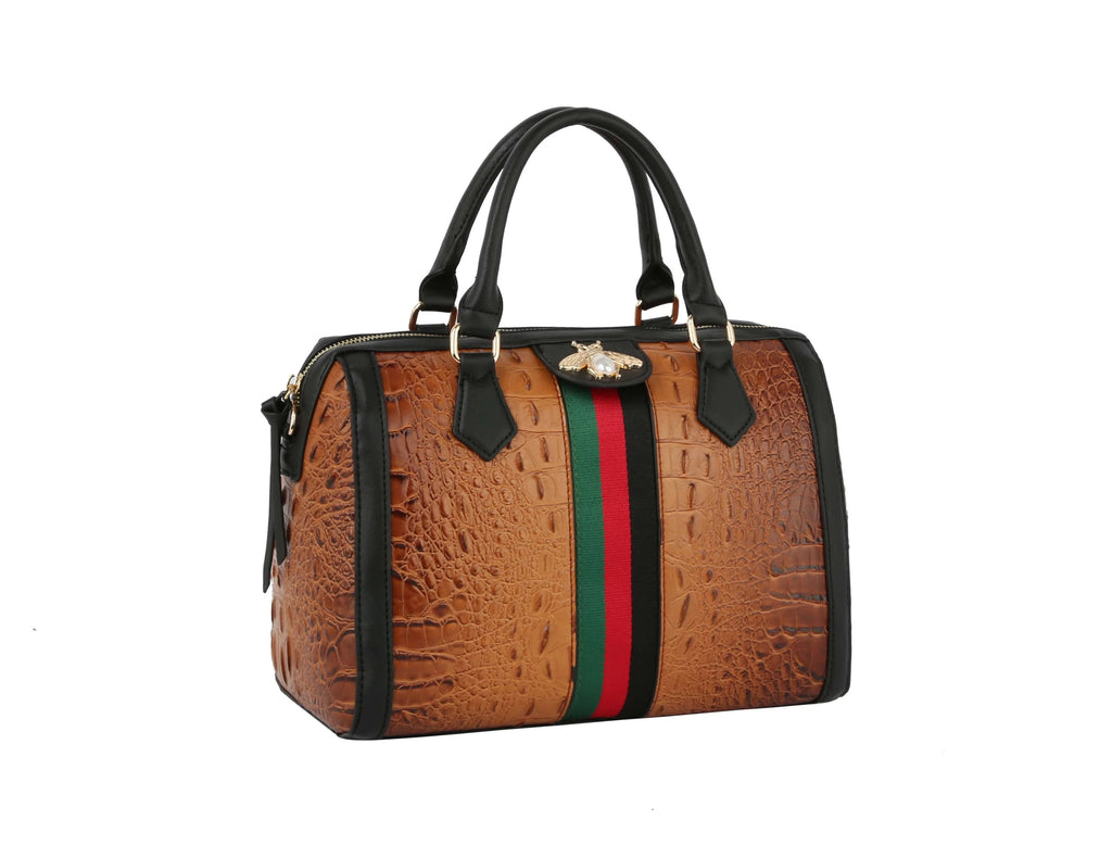 Fashion Croco Satchel with bee and Stripe