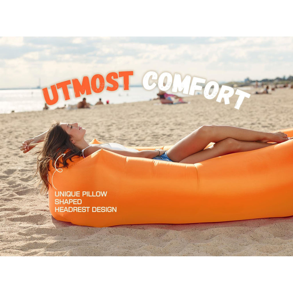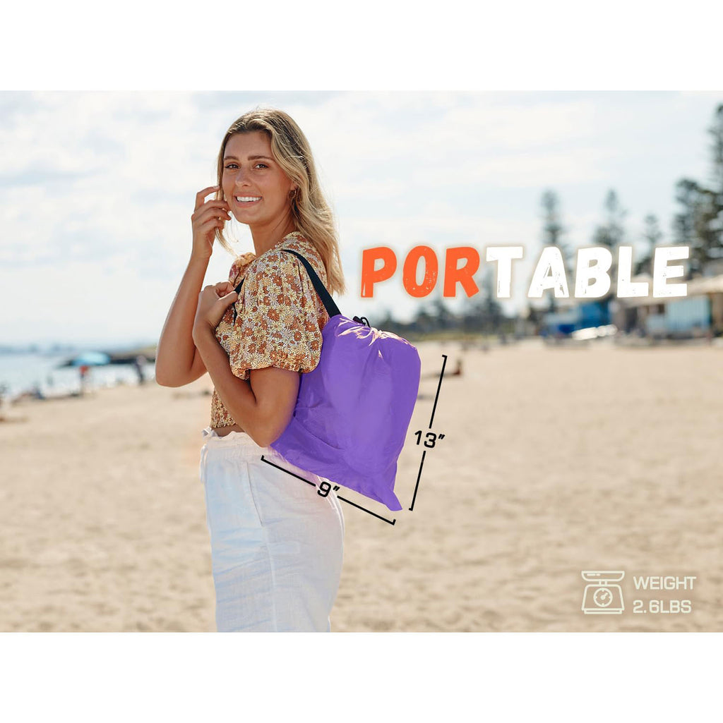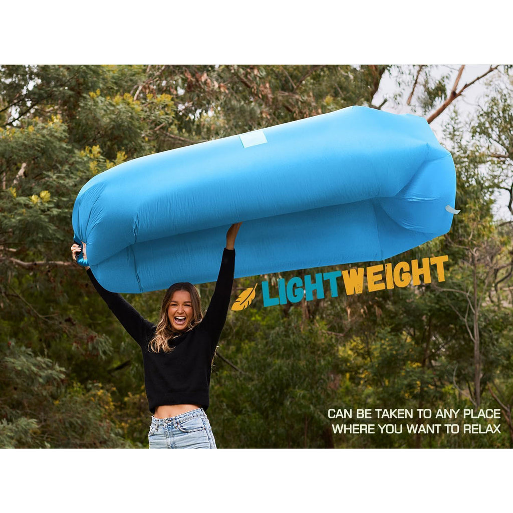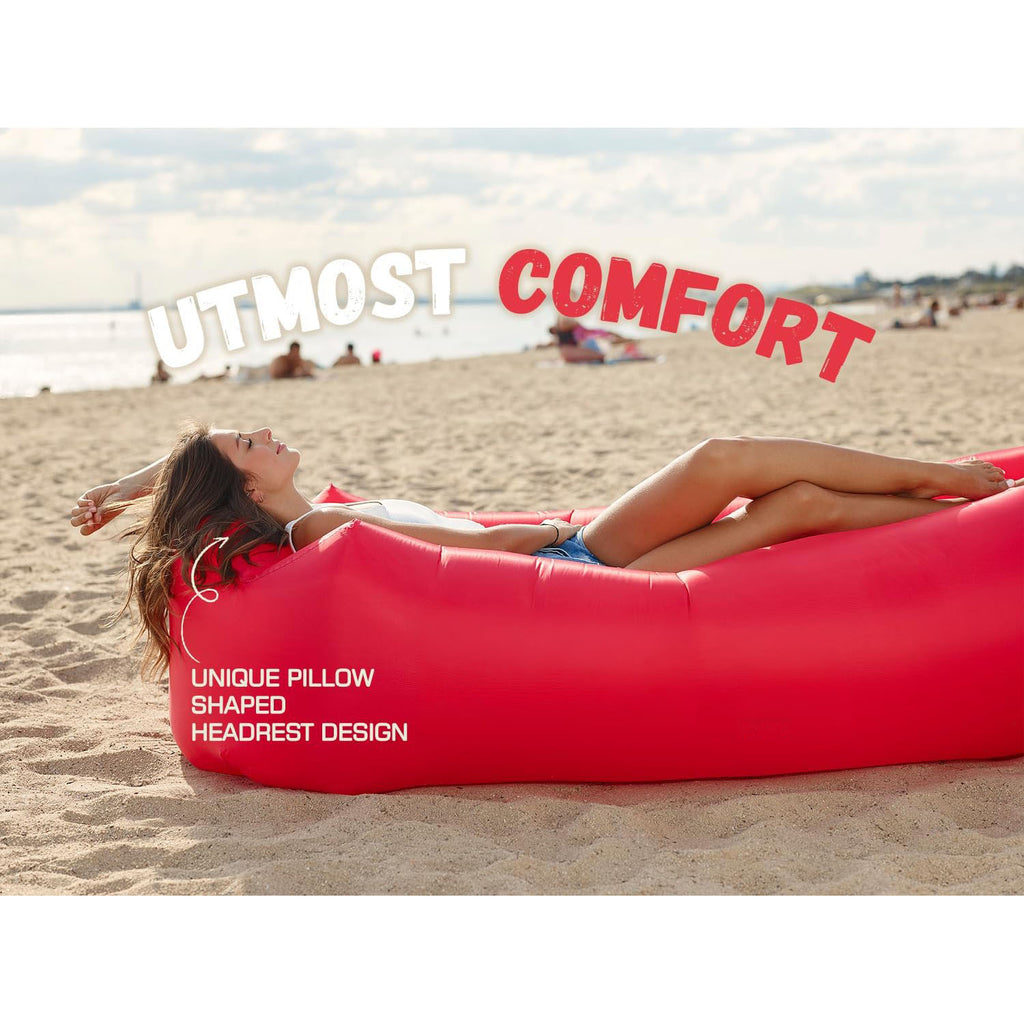 - PORTABLE & LIGHTWEIGHT: The air lounger comes with a convenient pouch, weighs around 2 lbs, and is easy to carry when traveling, making it perfect for on-the-go relaxation.