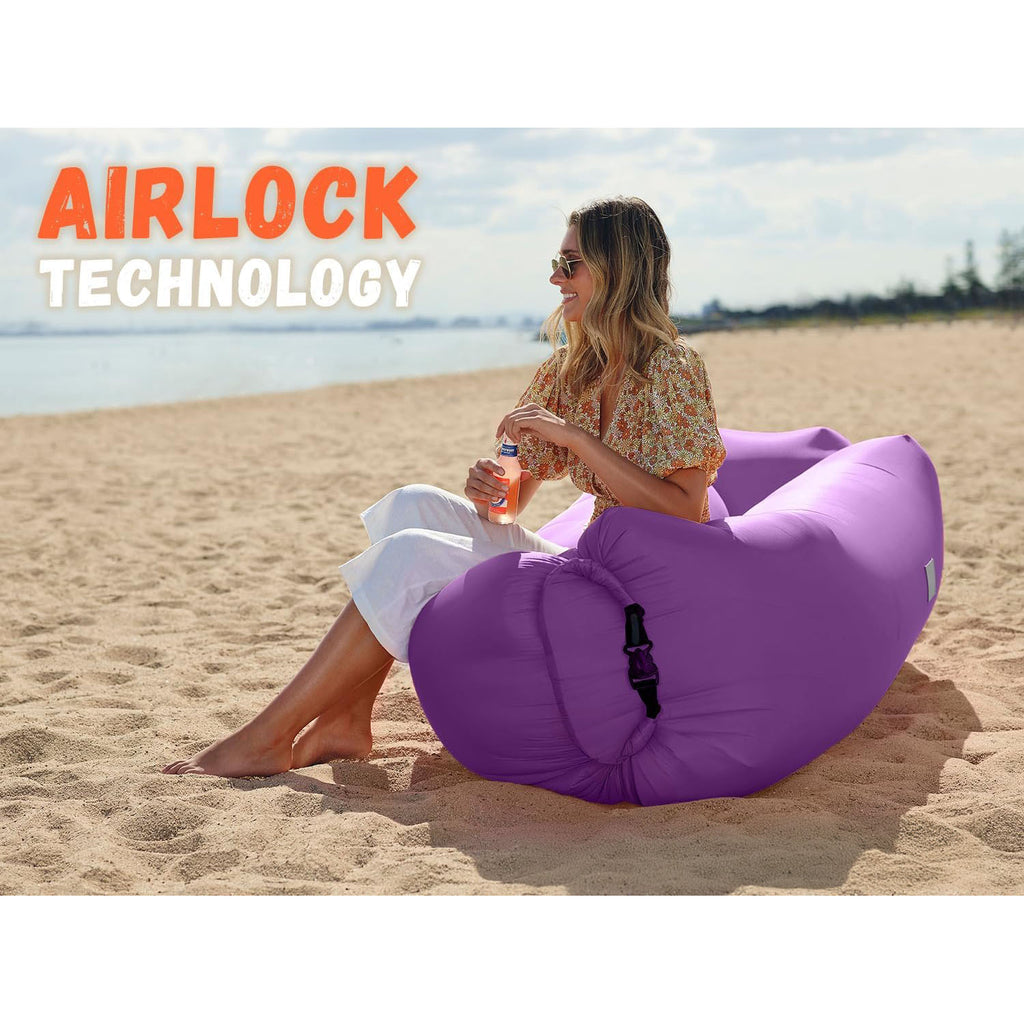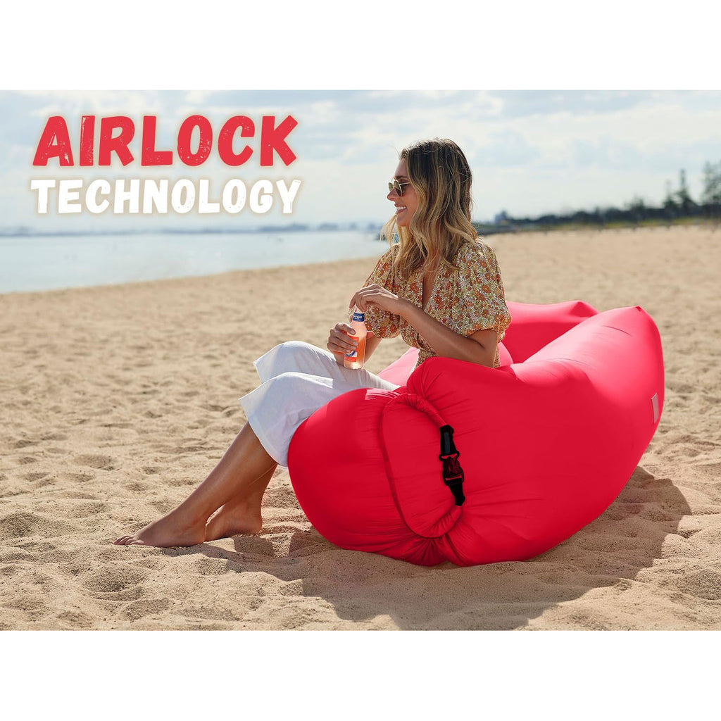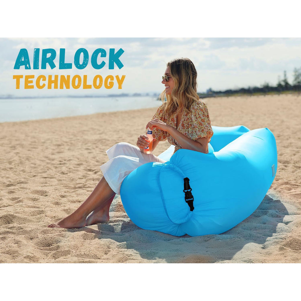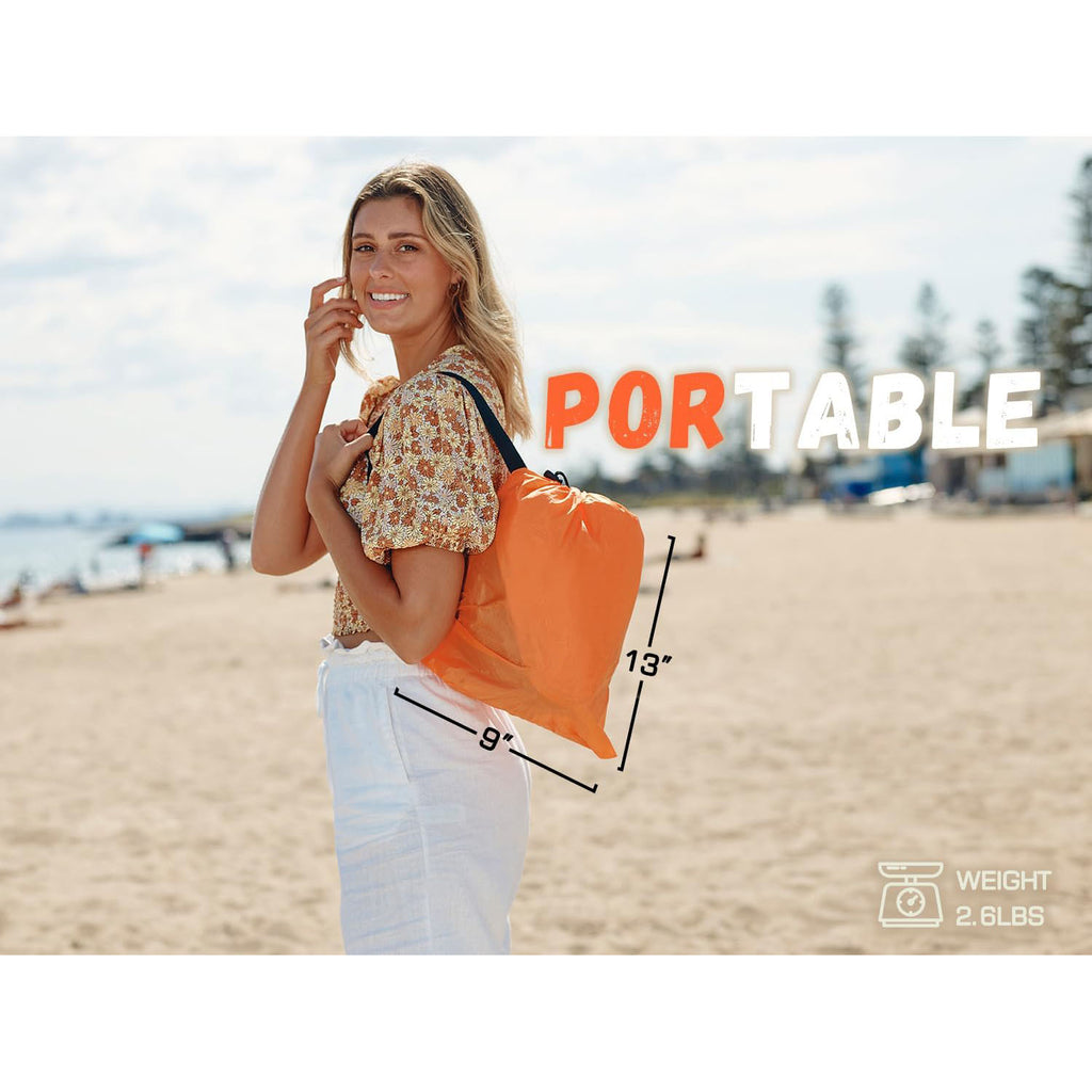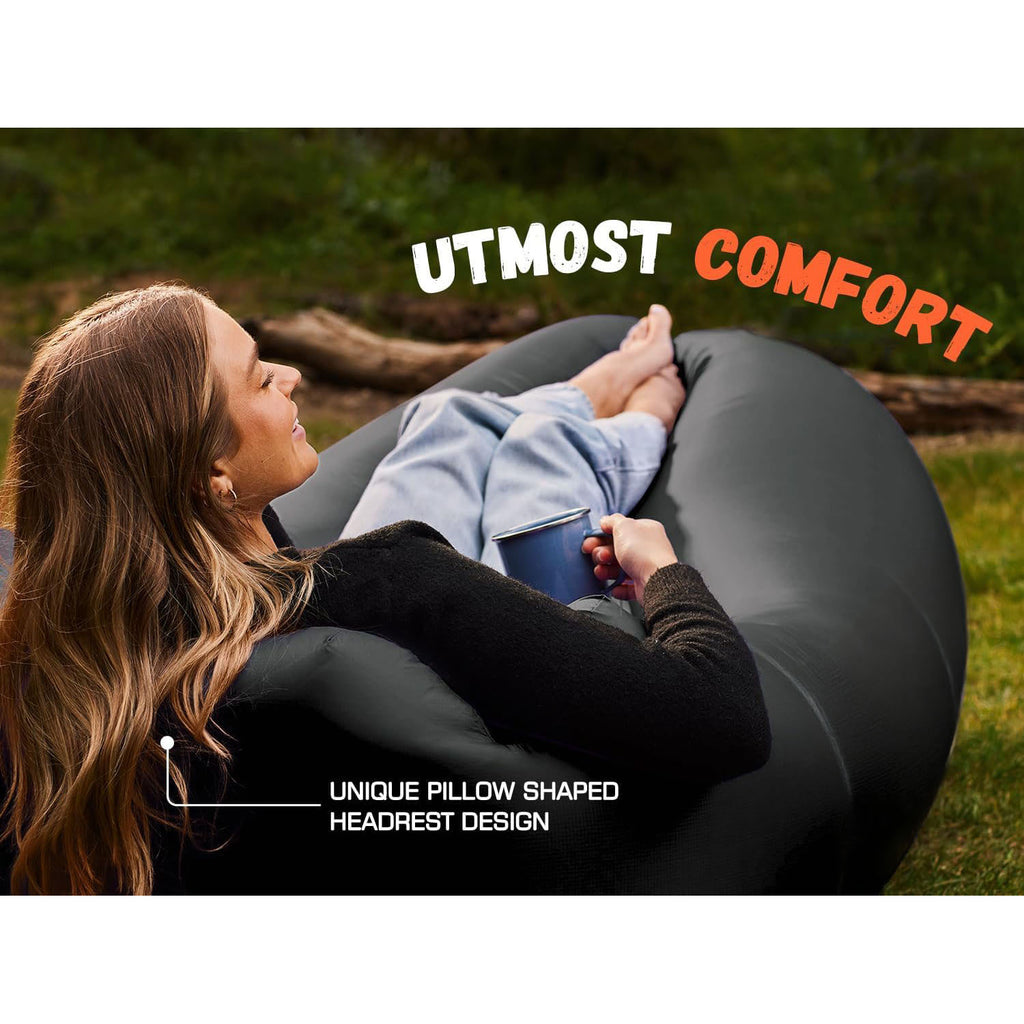 - PORTABLE & LIGHTWEIGHT: The air lounger comes with a convenient pouch, weighs around 2 lbs, and is easy to carry when traveling, making it perfect for on-the-go relaxation.