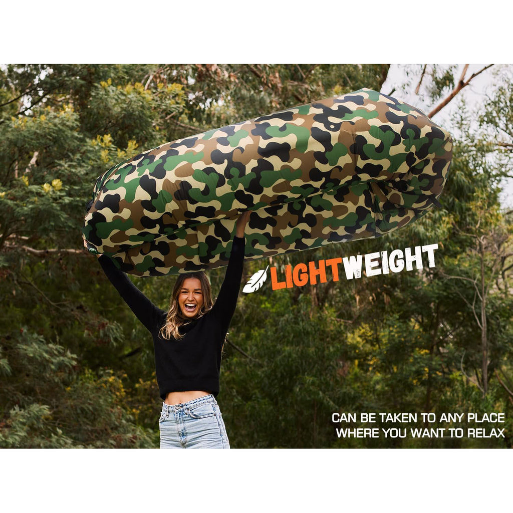 - PREMIUM QUALITY & WORKMANSHIP: Made of 100% 210T rip-stop polyester, this air lounger is built to withstand the elements, including sun, water, dirt, and bugs. Use it as a picnic blanket, for vacation relaxation, hiking, camping, or hanging out with friends or family in your garden or backyard—a truly multifunctional camping accessory!