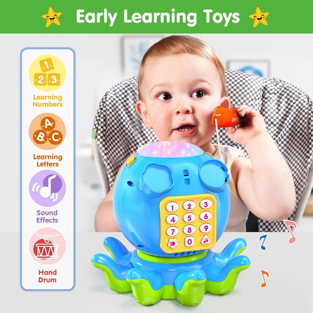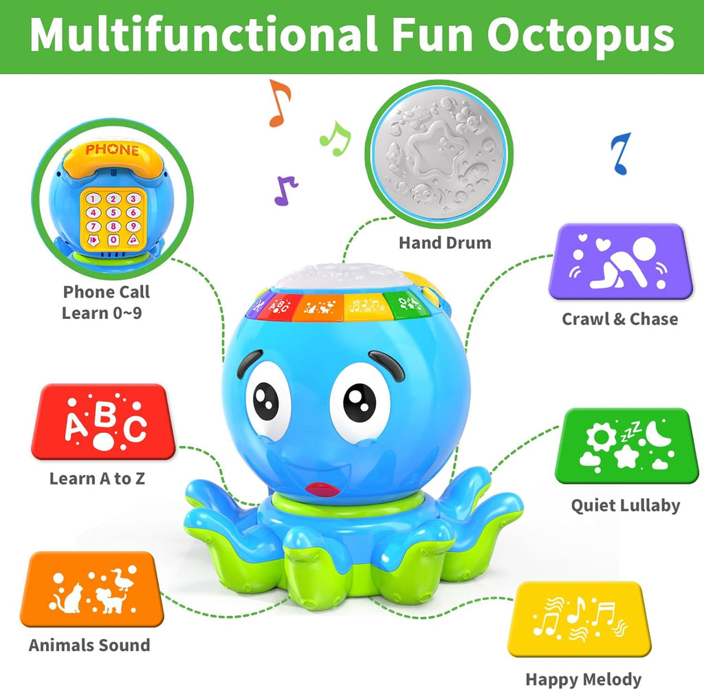 With flashing lights and cheerful sounds, the octopus moves around to motivate babies to crawl and chase. Perfect for tummy time, it strengthens muscles, supports balance, and encourages first steps.