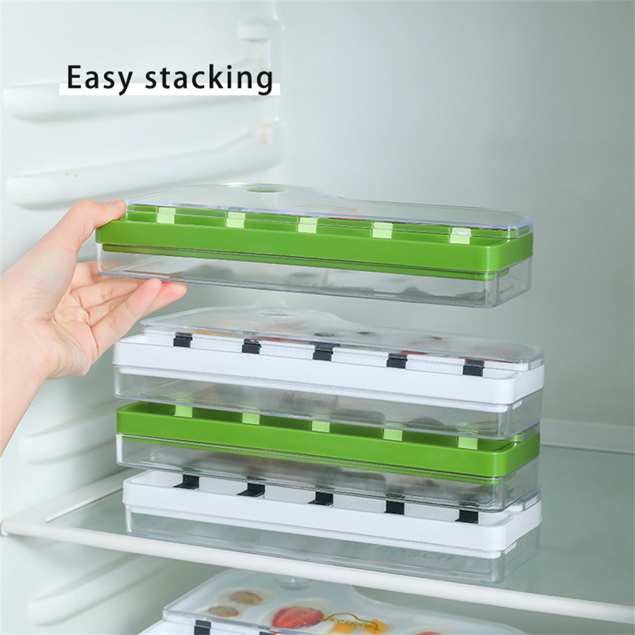 SPACE SAVING & PORTABLE ] Stackable ice maker tray with lid and ice storage box saves space, can freeze 30 x 2 mini ice cubes at a time. The large capacity ice storage box can store a large amount of ice cubes to meet the ice needs of family gatherings.