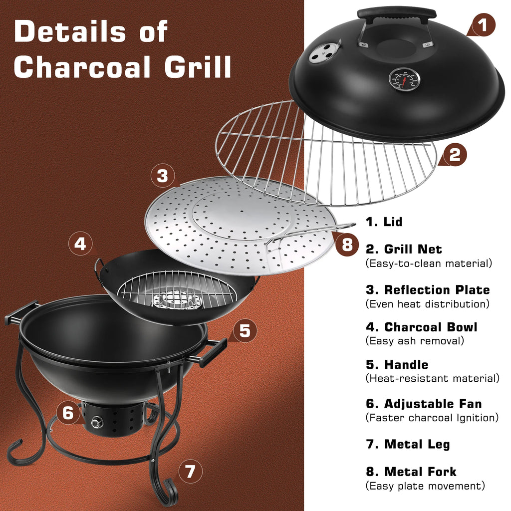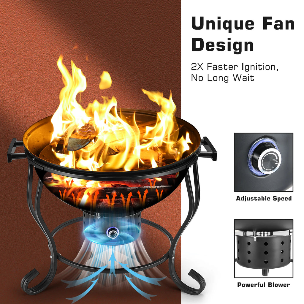 TOKTOO 17-Inch Charcoal BBQ & Fire Pit with Adjustable Fan for Camping and Outdoor