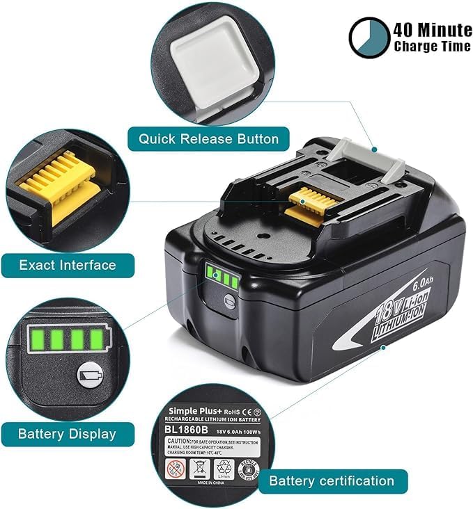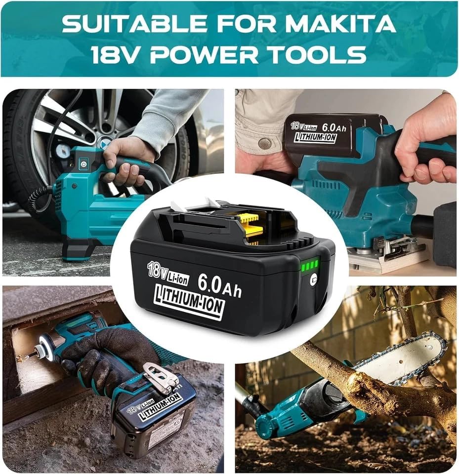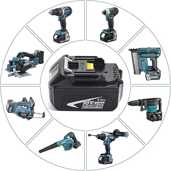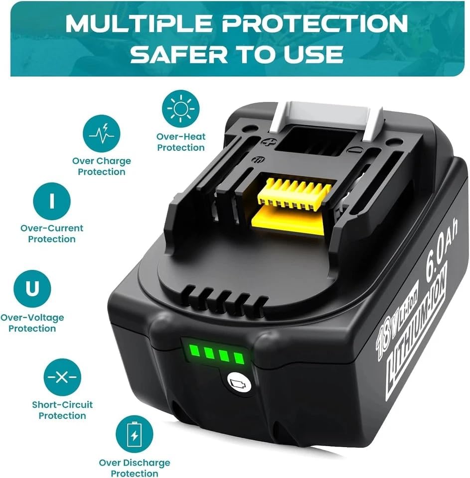- 【6000 mAh Replacement Maki-ta 18V Battery】Compared with the 5.0Ah battery, the replacement Maki-ta 6000 mA 18V battery has super battery life, which greatly saves charging time and improves work efficiency