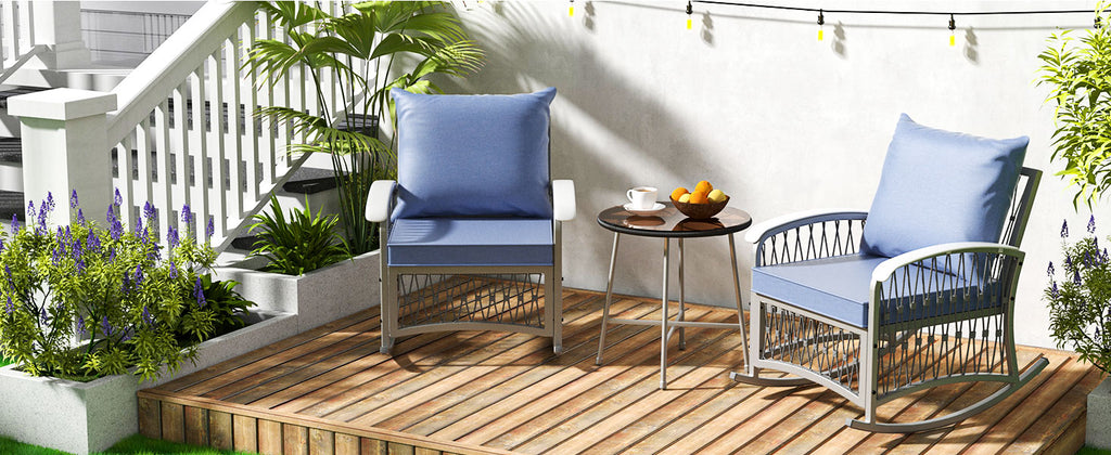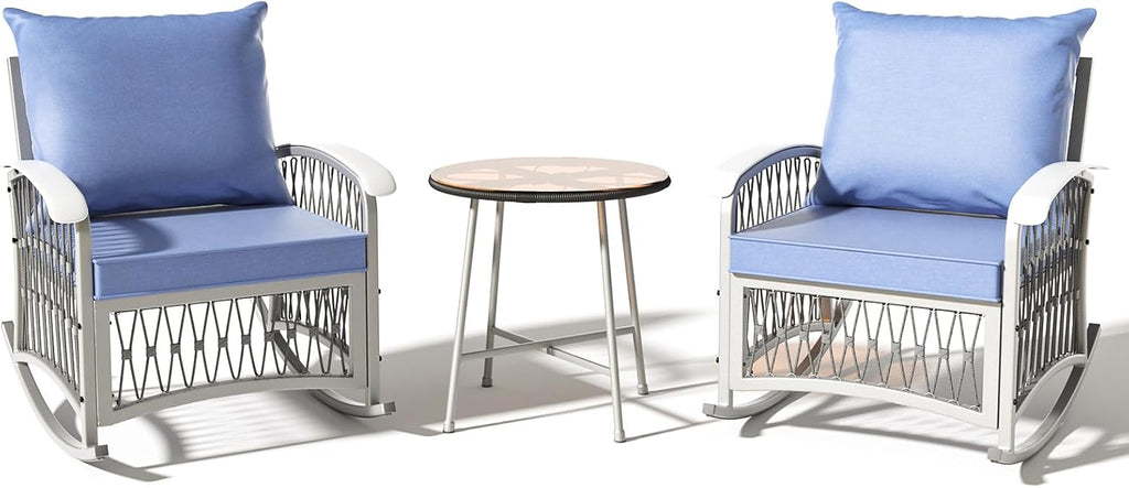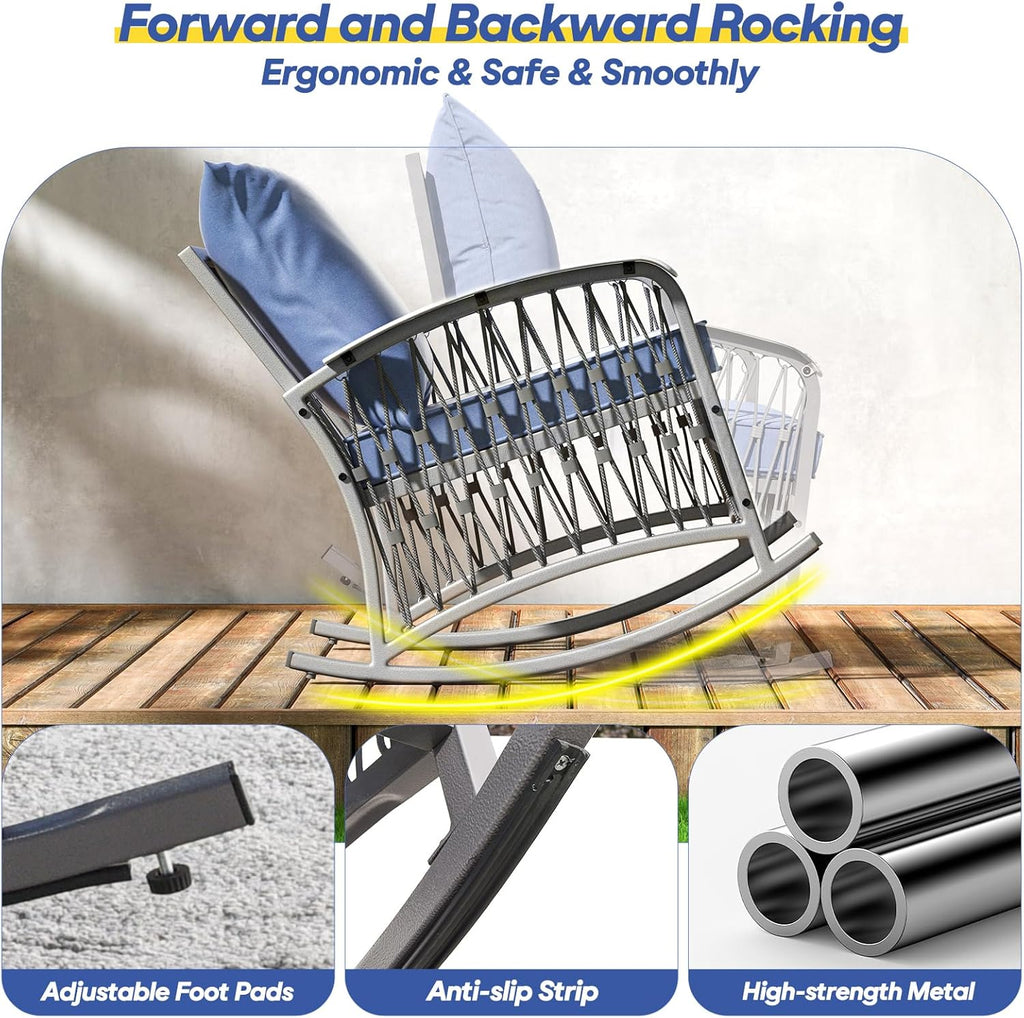 - 【Heavy-Duty Durability You Can Trust】Our patio rocking chairs are constructed with solid, rust-proof powder-coated metal frames and reinforced tubing, capable of supporting up to 350 lbs. Whether it's rain or shine, the frames are built to withstand the elements