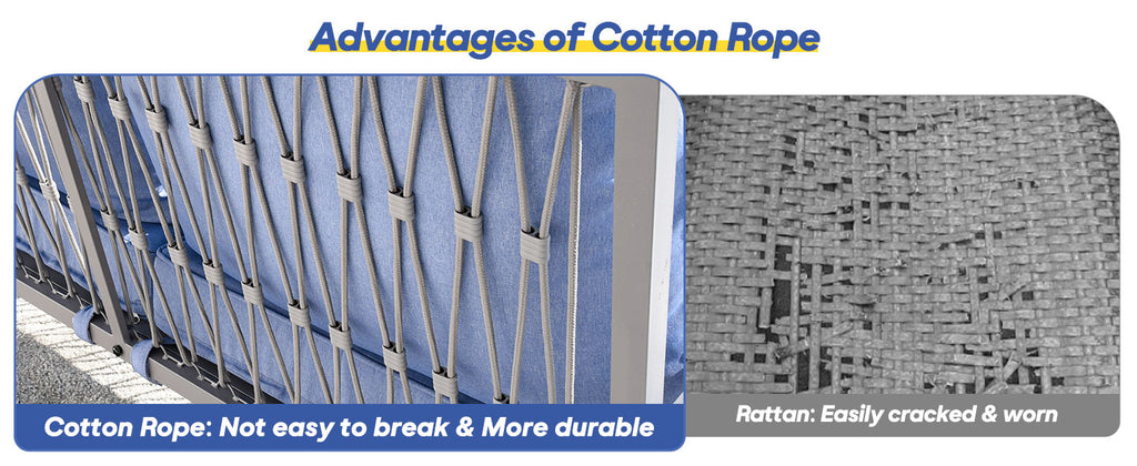 - 【Create Your Dream Patio Setup】 With four stylish combinations to choose from, create the Idea patio setup that reflects your personal style. Enhanced with chic cotton rope accents, these sets transform any outdoor space into a cozy, elegant retreat