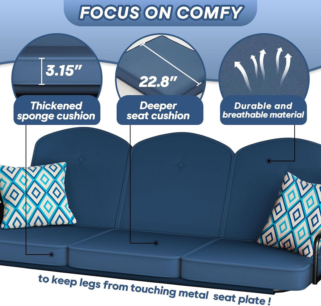 - 【Felt the swing wasn't stable or firm enough?】We always put safety first. Our swing is made of thicker iron tubes and have been widened the distance between the base legs to improve stability. Premium metal hooks ensure a load capacity of 800 lbs