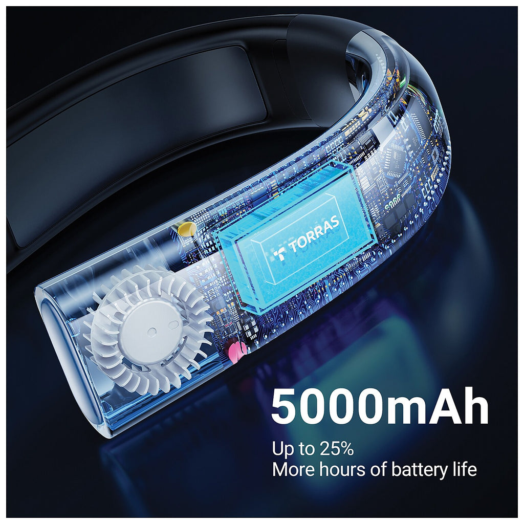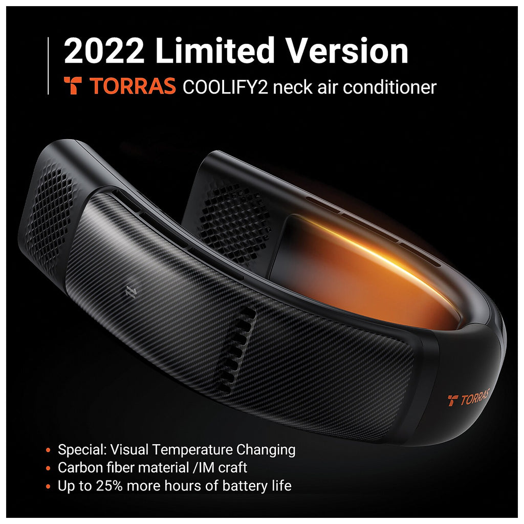 The exclusive TORRAS COOLIFY 2 Limited Edition Wearable Air Conditioner and Heater features a 5,000 mAh battery that provides you 25% more cooling time than other COOLIFY 2s. It will also keep you warm in the winter when switched to heat mode. The wrap-around design helps it rest safely around your neck while the hidden, bladeless fans prevent your hair from tangling. More than just Carbon Black in color, the temperature-responsive color-changing coating delivers a playful take on its look that's inspired by seasonal colorways, switching between orange and black. The improved IML finish with carbon fiber texture makes COOLIFY 2 look and feel premium. It is scratch-resistant with 2H hardness to maintain its premium appearance. The rechargeable neck fan provides up to 20 hours of cooling time on a single charge, depending on fan speed. The COOLIFY 2 necklace fan will keep you cool down or warm up, whether you're jogging or doing other outdoor activities. The COOLIFY 2 Limited Edition neck heater and neck fan is the ideal choice for keeping up with your vibe—any time of the year.