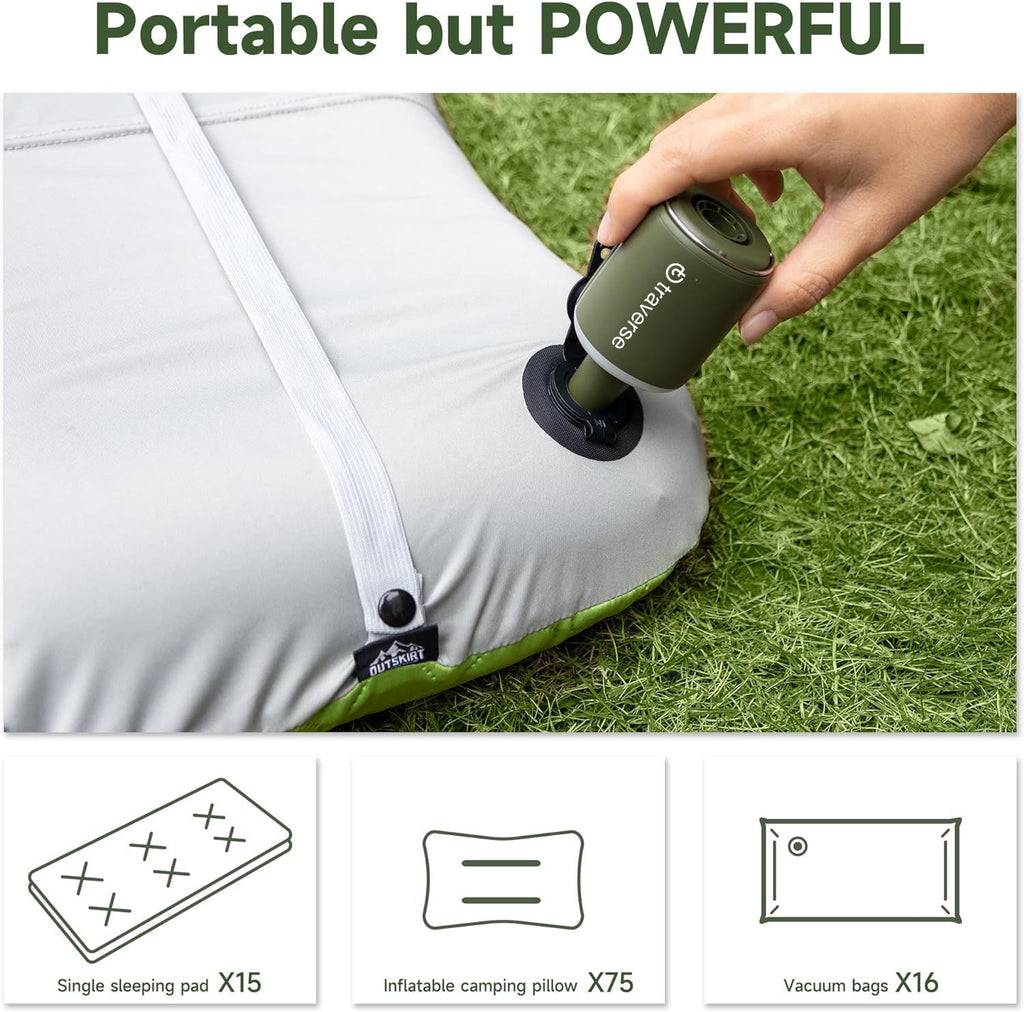 Experience ultimate convenience with our Compact Yet Powerful Mini Inflatable Pump, perfect for your outdoor adventures. Weighing only 3.6oz, this small but mighty pump boasts an impressive air pressure of 4.5kPa (0.65 PSI). Whether you're inflating camping air mattresses or deflating storage bags, this versatile tool is a must-have for every traveler. It even provides up to 8 hours of light in a single charge, making it an essential addition to your camping gear. (Note: Not suitable for balloons, basketballs, or tires!)