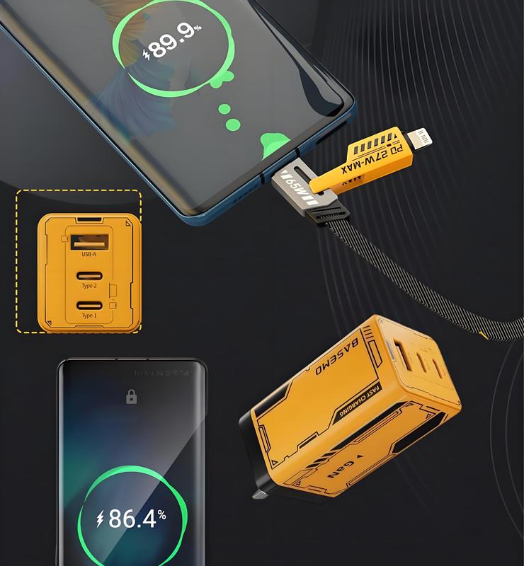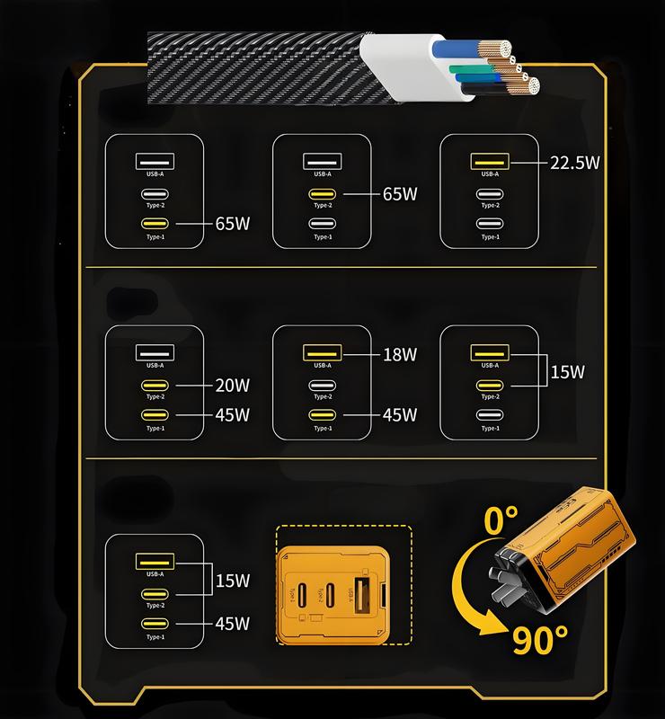 •Charges laptops, tablets, and smartphones fast with 65W power output.