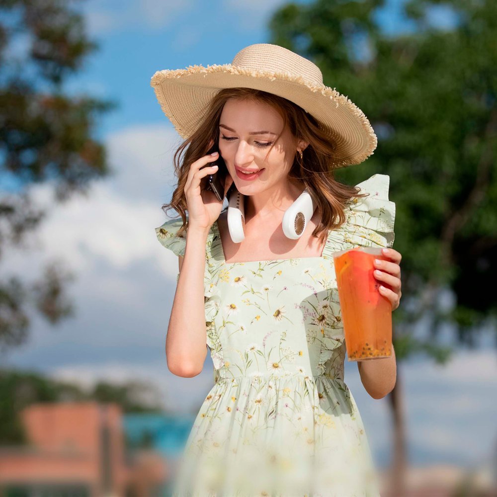 4000mAh capacity battery: The battery is rechargeable and lets you use this personal neck fan for over 8 hours at a time.