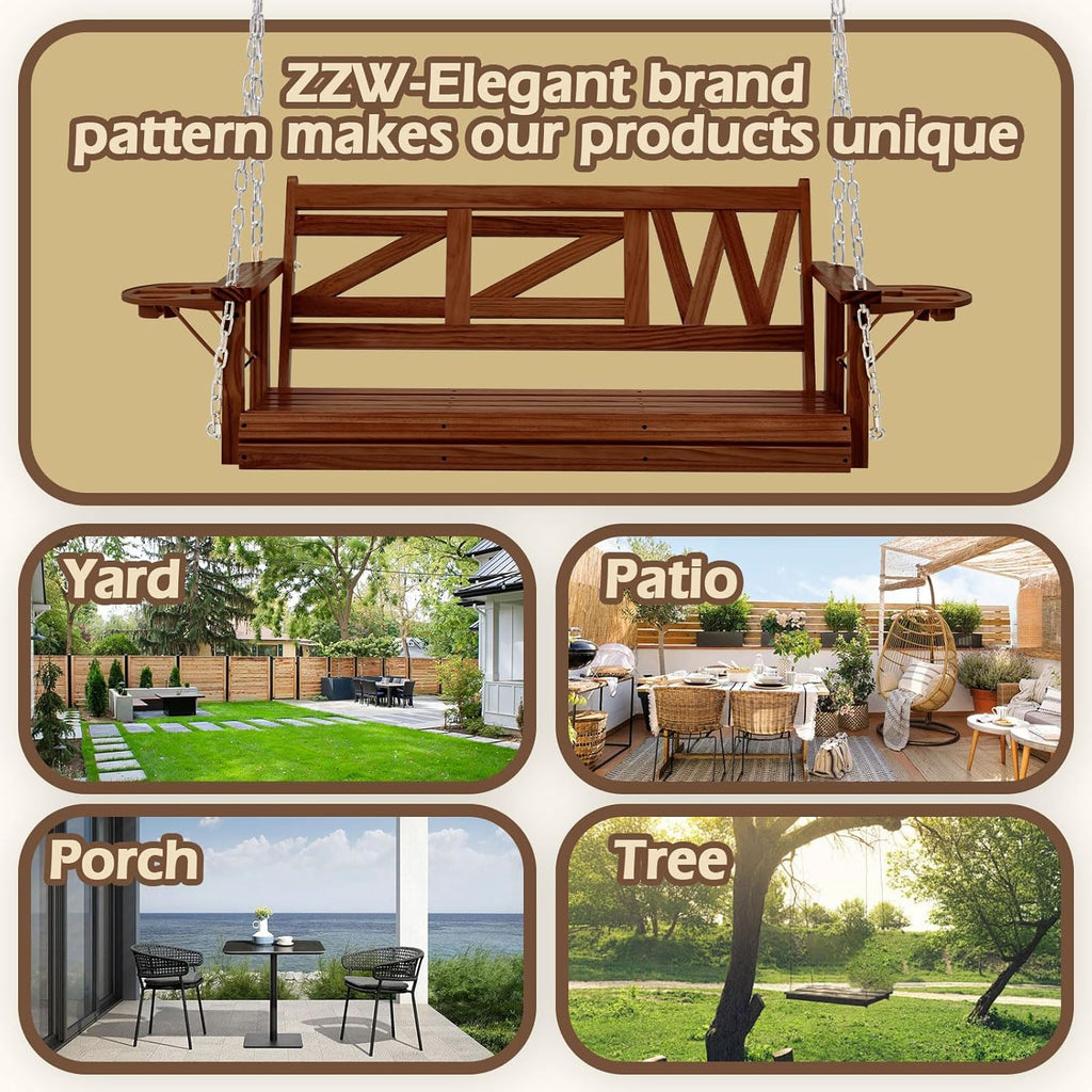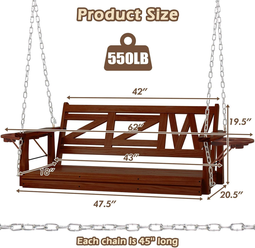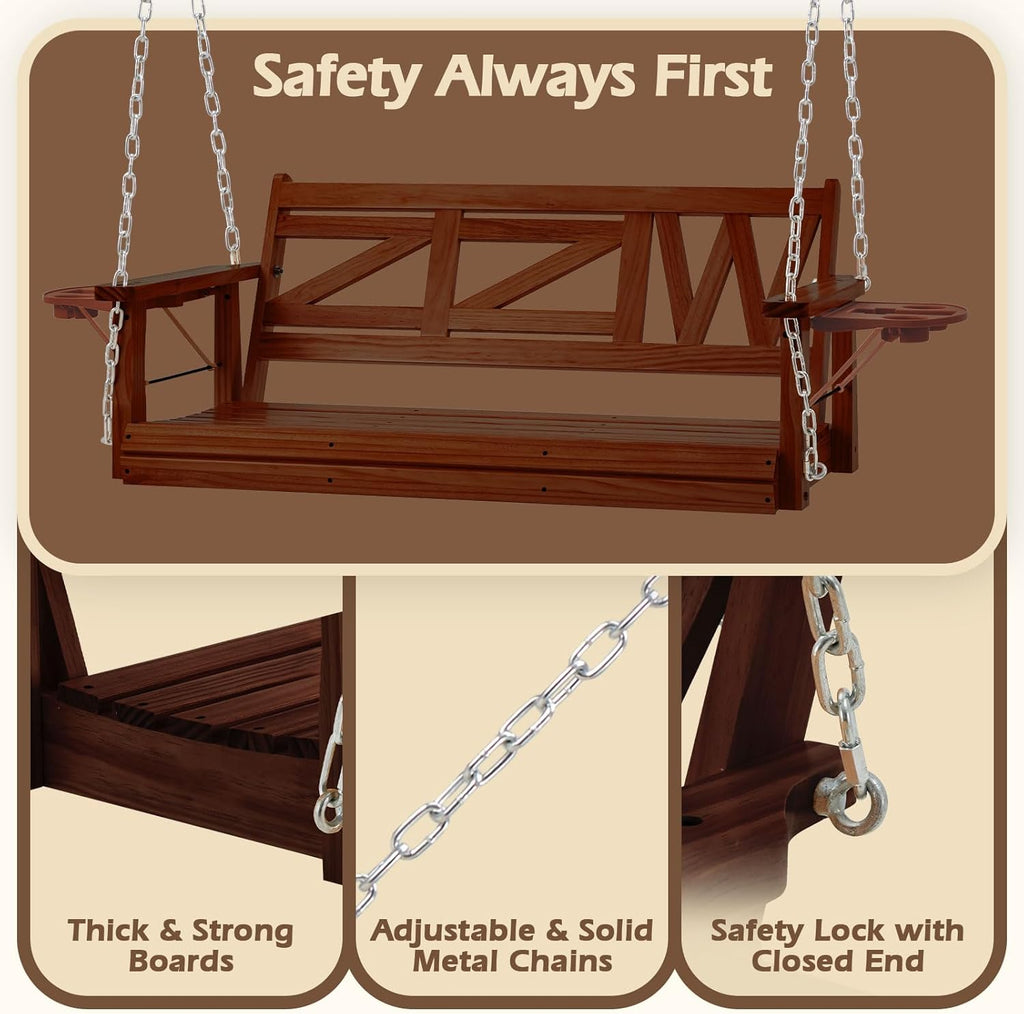 - 【Swings are unsafe to hang?】The patio swing is made of a strong wooden frame and metal chains that can safely hold up to 800lbs/550lbs. The wooden frame will not have problems with the seat collapsing and the metal chains with enclosed safety lock will not break